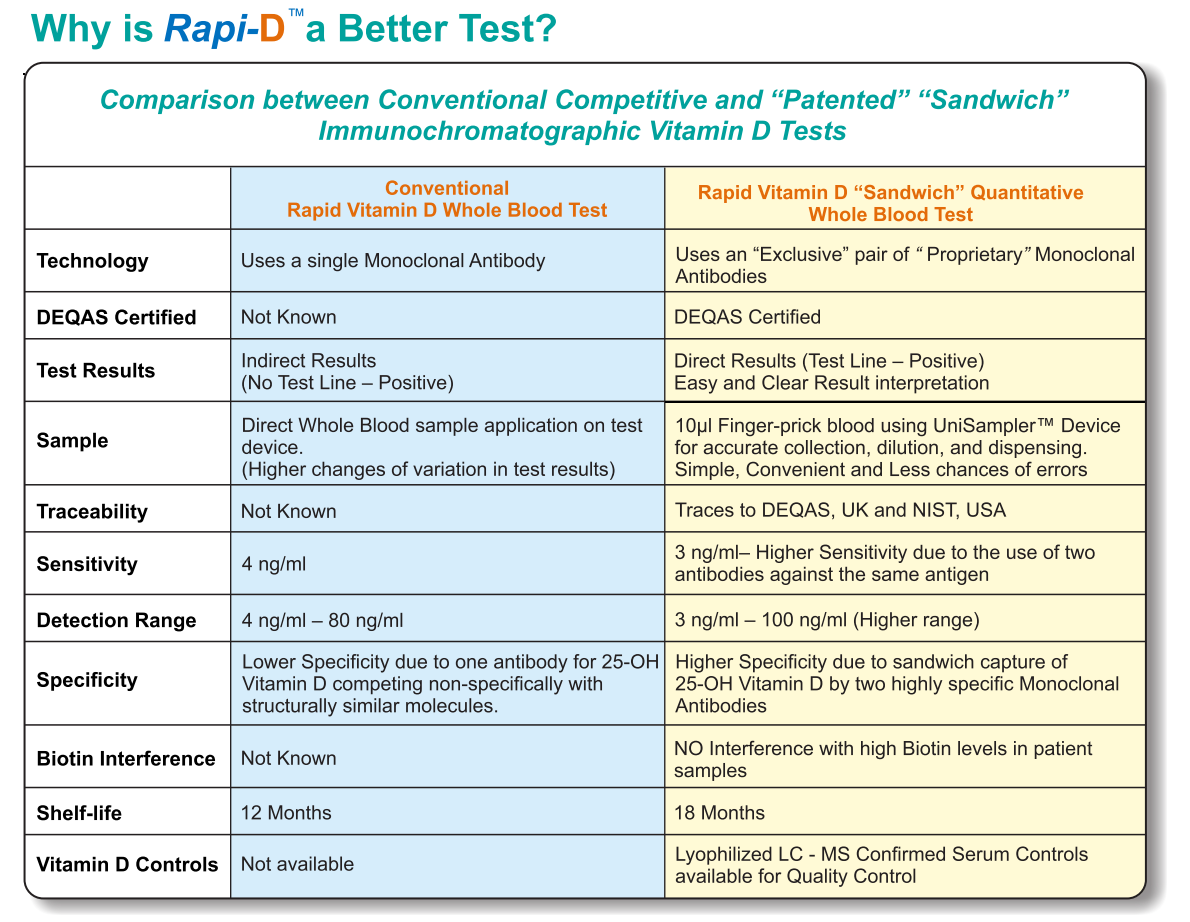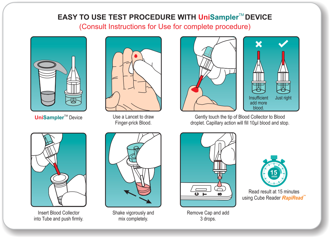 OnSight™- Vitamin D Quantitative Test von Unimed ist ein immunchromatographischer In-vitro-Test in einem Schritt. Er dient der quantitativen Bestimmung des gesamten 25-Hydroxy-Vitamin D (25-OH-Vitamin D) in menschlichem Kapillarblut oder Serum. Dieser Test liefert ein vorläufiges diagnostisches Ergebnis und kann zum Screening auf Vitamin-D-Mangel verwendet werden.