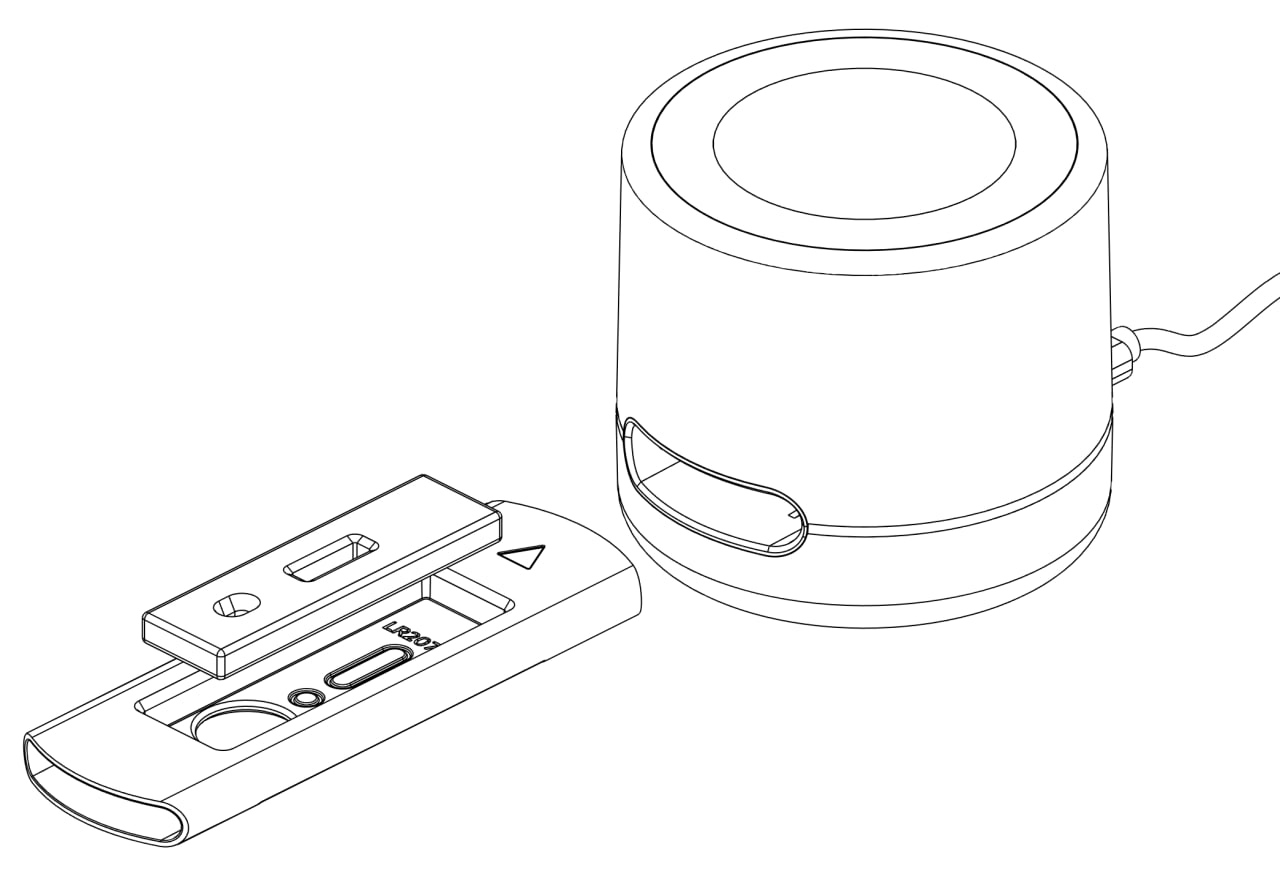 - Insert the adapter with the test cassette into the device slot, following the adapter’s direction
